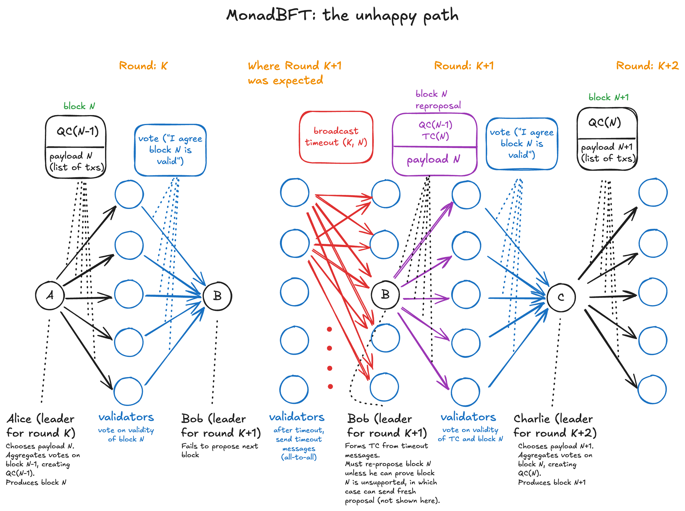 The superpower of MonadBFT is that, due to the complicated set of rules for handling a timeout